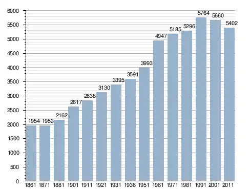 في سنة 1861 بلغ عدد السكان 1٬954 نسمة، وتطور العدد ليصل في سنة 2011 لـ 5٬402 نسمة.
