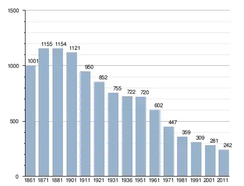 في سنة 1861 بلغ عدد السكان 1٬001 نسمة، وتطور العدد ليصل في سنة 2011 لـ 242 نسمة.