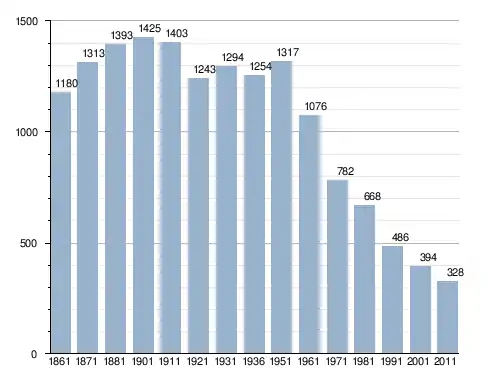 في سنة 1861 بلغ عدد السكان 1٬180 نسمة، وتطور العدد ليصل في سنة 2011 لـ 328 نسمة.