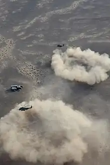 الغبار الهارب من طيارات الهيليكوبتر العسكرية.