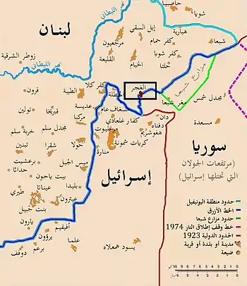 |CitationClass=تم تجاهله (مساعدة) - من دون تحديد موعد للتنفيذ: إسرائيل تقرر الانسحاب من الجانب الشمالي لقرية الغجر اللبنانية. العربية.نت، تاريخ الوصول: 17 نوفمبر، 2010. نسخة محفوظة 09 نوفمبر 2017 على موقع واي باك مشين.