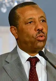عبد الله الثني (مواليد 7 يناير 1954) رئيس الحكومة المؤقتة، بعد أن صوّت المؤتمر الوطني العام في يوم 11 مارس بحجب الثقة عن علي زيدان.[11] شغل منصب وزير الدفاع في حكومة علي زيدان. عينه المؤتمر الوطني العام بالانتخاب خلفا لمحمد البرغثي على خلفية أحداث عنف في طرابلس قبل ذلك، وحلف اليمين في أغسطس 2013.