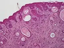 |CitationClass=تم تجاهله (مساعدة) - Caceci, Thomas. "Integument I: Skin". VM8054 Veterinary Histology Laboratory Exercises. Virginia–Maryland Regional College of Veterinary Medicine. مؤرشف من الأصل في 06 يناير 2013. اطلع عليه بتاريخ 19 ديسمبر 2012. الوسيط