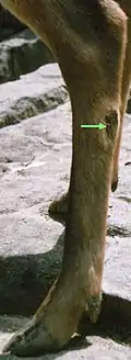 ![]() السهم يشير إلى الغدة المشطية لغزال سيكا السهم يشير إلى الغدة المشطية لغزال سيكا | |