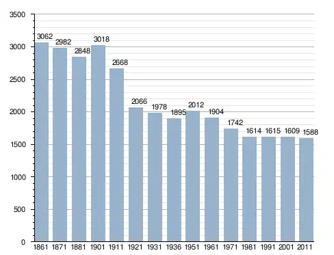 في سنة 1861 بلغ عدد السكان 3٬062 نسمة، وتطور العدد ليصل في سنة 2011 لـ 1٬588 نسمة.