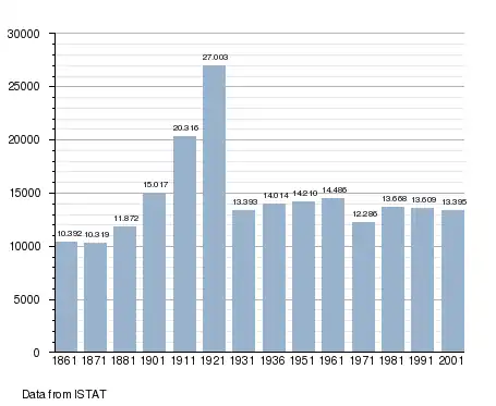 |CitationClass=تم تجاهله (مساعدة) - Superficie di Comuni Province e Regioni italiane al 9 ottobre 2011 — تاريخ الاطلاع: 16 مارس 2019 — الناشر: المعهد الوطني للإحصاء