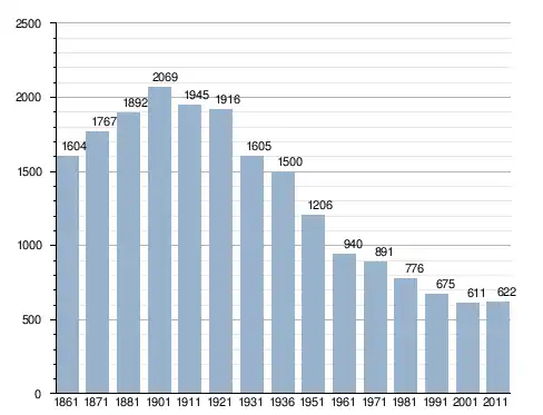 في سنة 1861 بلغ عدد السكان 1٬604 نسمة، وتطور العدد ليصل في سنة 2011 لـ 622 نسمة.