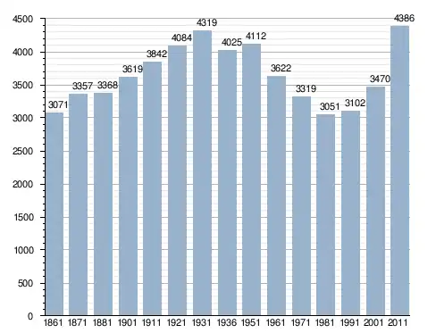 في سنة 1861 بلغ عدد السكان 3٬071 نسمة، وتطور العدد ليصل في سنة 2011 لـ 4٬386 نسمة.