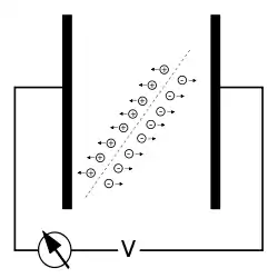 عند تأين الغاز بين القطبين بفعل مرور أشعة ألفا أو أشعة بيتا أو الأشعة السينية أو أي نوع آخر من الجسيمات المؤينة خلال الغاز تتحرك الأيونات وكذلك الإلكترونات إلى القطب المخالف لشحنتها، وينشأ تيار كهربي. يمكن قياسه بواسطة جلفانومتر أو إلكترومتر.