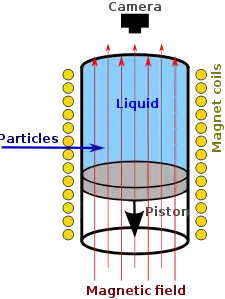 ويحيط بغرفة الفقاقيع في العادة مجال مغناطيسي متساوي بحيث تنحرف تحت تأثيره الجسيمات المختلفة الشحنة في اتجاه مضاد، طبقا لقانون لورينس، فيرسم كل جسيم مسارا مقوسا، يتناسب نصف قطر انحنائه تناسبا طرديا مع سرعة و كتلة الجسيم .