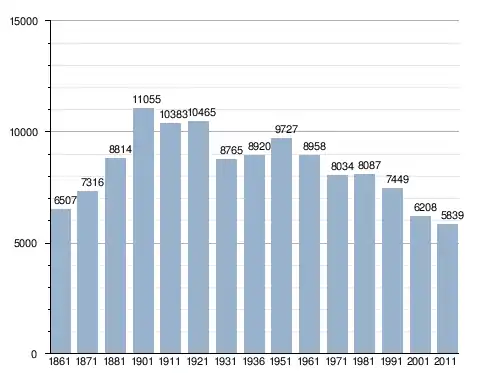 في سنة 1861 بلغ عدد السكان 6٬507 نسمة، وتطور العدد ليصل في سنة 2011 لـ 5٬839 نسمة.