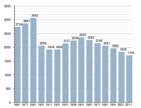 في سنة 1861 بلغ عدد السكان 2٬734 نسمة، وتطور العدد ليصل في سنة 2011 لـ 1٬704 نسمة.