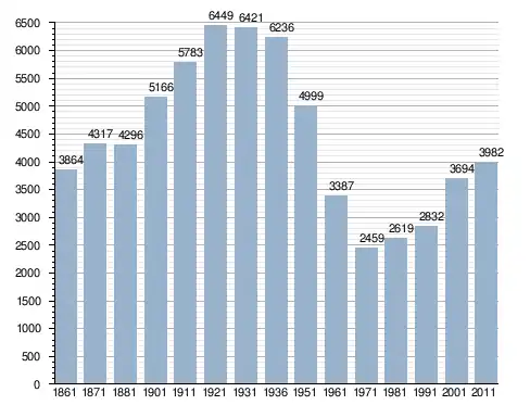 في سنة 1861 بلغ عدد السكان 3٬864 نسمة، وتطور العدد ليصل في سنة 2011 لـ 3٬982 نسمة.