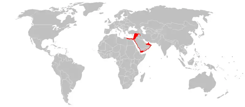 - في السهول الساحليّة في فلسطين حيث تعيش جمهرة صغيرة تتناقص أعدادها باستمرار بسبب التمدّن الحاصل.