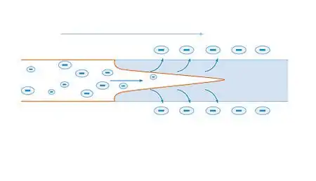 ![]() تغير توزع الشحنة في الليف عندما يجف الليف خلال مسيره |