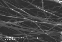 تُظهر الألياف فائقة النعومة والمغزولة كهربائياً نزعة واضحة لأن تصنع كمواد مركبة بألياف طويلة.[42]
