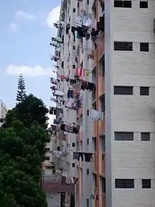 نشر الغسيل على شرفات الشقق لتجف في سنغافورة.