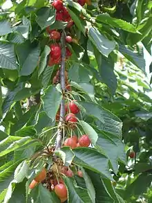 غصن شجرة كرز محمل بالثمار