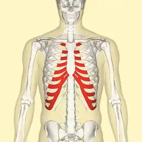 ![]() موقع الغضاريف الضلعية (كما هو موضح باللون الأحمر). | |