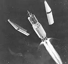 حينما يكون خارج الغلاف الجوي يتم فصل الغطاء، معرضًا الحمولة لبيئة الفضاء.