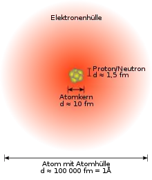 استقرت معلوماتنا على أن الذرة لها نواة من البروتونات و النيوترونات وهي جسيمات ثقيلة بالنسبة إلى الإلكترون. لهذا تتركز كتلة الذرة في نواة الذرة ، وتدور حولها الإلكترونات في مدارات ، وتشكل مجموع تلك المدارات الغلاف الإلكتروني للذرة.