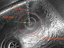 يمكن رؤية العديد من صدمات النهاية في النظام الأرضي، وربما أسهلهم هو رؤية جريان الماء من الحنفية على المغسلة مكونا مايسمى وثب مائي (بالإنجليزية: Hydraulic jump). فعند سقوطه على المغسلة، فإن الماء ينتشر بسرعة أعلى من سرعة الموجة الأم، مشكلا سطحا ضحلا من تيار متدفق متباعدا بشكل سريع (مشابها للرياح الشمسية ذات السرعة فوق صوتية وضعيفة الكثافة). تتكون حول محيط السطح مقدمة الصدمة أو حائط من أشكال الماء، أما خارج مقدمة الصدمة فإن سرعة الماء تقل عن سرعة موجة الماء الهابطة (وهي شبيهة للوسط النجمي دون الصوتي).