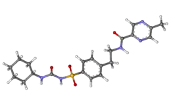 وتشمل الآثار الجانبية الشائعة الغثيان والإسهال وانخفاض نسبة السكر في الدم والصداع.[3] وتتصمن الآثار الجانبية الأخرى النعاس، والطفح الجلدي، والرعاش.[4] قد تحتاج إلى تعديل الجرعة لدى المصابين بأمراض الكبد أو الكلي.[3] لا يُنصح باستخدامه أثناء الحمل أو الرضاعة الطبيعية.[4] يعمل عن طريق تحفيز البنكرياس على إفراز الأنسولين وزيادة حساسية الأنسجة للأنسولين.[3]