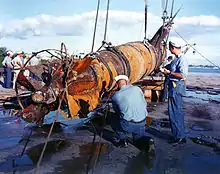|CitationClass=تم تجاهله (مساعدة) - "Navy Tests First Midget Submarine As Close In Weapon. Popular Mechanics, February 1956, p. 124, bottom of page. نسخة محفوظة 16 ديسمبر 2019 على موقع واي باك مشين.