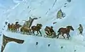 صور نقل البريد في العصور الوسطى في ممر جوتهارد باس .