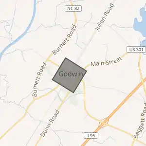 - "صفحة غودوين (كارولاينا الشمالية) في خريطة الشارع المفتوحة". OpenStreetMap. اطلع عليه بتاريخ 6 مارس 2021. الوسيط
