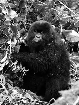 |CitationClass=تم تجاهله (مساعدة) - Fossey, D., & Harcourt, A.H. (1977). "Feeding ecology of free ranging mountain gorillas (Gorilla gorilla beringei)". In Clutton Brock (Ed.) (المحرر). Primate ecology: Studies of feeding and ranging behaviour in lemurs, monkeys and apes. London: Academic Press. الوسيط