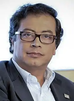 غوستافو بيترو (بالإسبانية: Gustavo Francisco Petro Urrego) هو كاتب واقتصادي وسياسي كولومبي، ولد في 19 أبريل 1960 في كولومبيا.[13][14][15] حزبياً، نشط في Alternative Democratic Pole (2005 – 2010) وMovimiento Progresistas (izquierda) (2011 – ) و (1990 – 1997) وAlternative Way (1998 – 2002) وRegional Integration Movement (2002 – 2004).