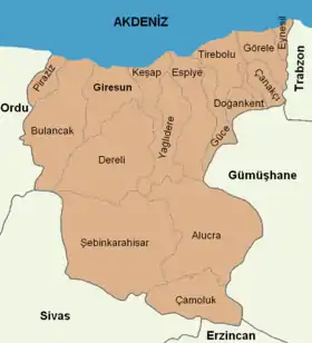 محافظة غيرسون هي إحدى محافظات تركيا.[6] عاصمتها مدينة غيرسون تبلغ مساحتها 7,151 كم2 ويبلغ عدد سكانها 523,819 نسمة كما يبلغ معدل الكثافة السكانية 73/كم2 تقع في شمال تركيا على ساحل البحر الأسود.