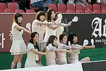 ![]() من اليمين: يوري، سوني إي، تيفاني هوانغ، جيسيكا جونغ، إم يونا، تشوي سو يونغ، سو جون هين، كم هيو يون، كم تاي يون | |