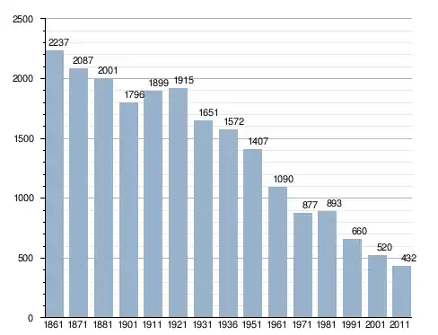في سنة 1861 بلغ عدد السكان 2٬237 نسمة، وتطور العدد ليصل في سنة 2011 لـ 432 نسمة.