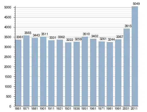 في سنة 1861 بلغ عدد السكان 3٬361 نسمة، وتطور العدد ليصل في سنة 2011 لـ 5٬049 نسمة.