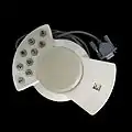The Logitech Metaphor, the first wireless mouse (1984). On display at the Musée Bolo، مدرسة لوزان الاتحادية للفنون التطبيقية