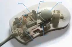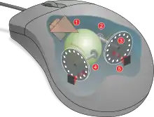 ويعتمد في التعرف على حركة الفأرة على كرة داخل الفأرة تدور مع حركة الفأرة وتؤثر حركتها على ترسين صغيرين متعامدين.