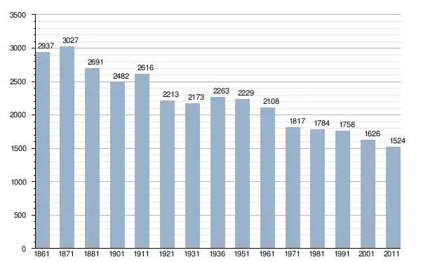 في سنة 1861 بلغ عدد السكان 2٬937 نسمة، وتطور العدد ليصل في سنة 2011 لـ 1٬524 نسمة.