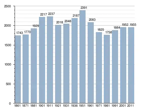 في سنة 1861 بلغ عدد السكان 1٬743 نسمة، وتطور العدد ليصل في سنة 2011 لـ 1٬955 نسمة.