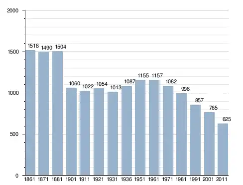 في سنة 1861 بلغ عدد السكان 1٬518 نسمة، وتطور العدد ليصل في سنة 2011 لـ 625 نسمة.