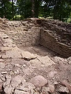 ![]() أساسات حجرية لكنيسة قديمة في فارنهم، يعود تاريخها إلى 1040 م أو ما قبل. | |