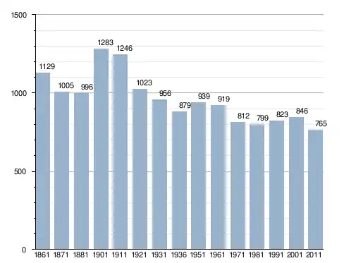 في سنة 1861 بلغ عدد السكان 1٬129 نسمة، وتطور العدد ليصل في سنة 2011 لـ 765 نسمة.