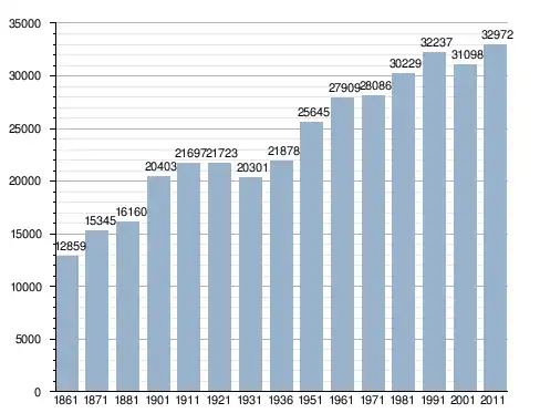 في سنة 1861 بلغ عدد السكان 12٬859 نسمة، وتطور العدد ليصل في سنة 2011 لـ 32٬972 نسمة.