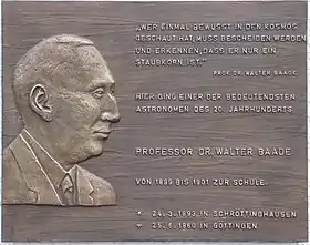|CitationClass=تم تجاهله (مساعدة) - Dieke, Sally H. (1970). "Baade, Wilhelm Heinrich Walter". Dictionary of Scientific Biography. 1. New York: Charles Scribner's Sons. صفحات 352–354. ISBN 0-684-10114-9. الوسيط