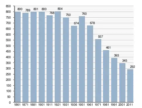 في سنة 1861 بلغ عدد السكان 800 نسمة، وتطور العدد ليصل في سنة 2011 لـ 292 نسمة.