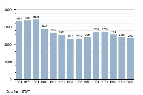 |CitationClass=تم تجاهله (مساعدة) - كل التركيبة السكانية وغيرها من الإحصاءات: الإيطالية معهد الإحصاء الوطني للإحصاءات.