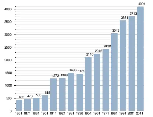 في سنة 1861 بلغ عدد السكان 432 نسمة، وتطور العدد ليصل في سنة 2011 لـ 4٬091 نسمة.