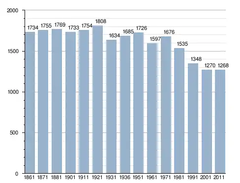في سنة 1861 بلغ عدد السكان 1٬734 نسمة، وتطور العدد ليصل في سنة 2011 لـ 1٬268 نسمة.