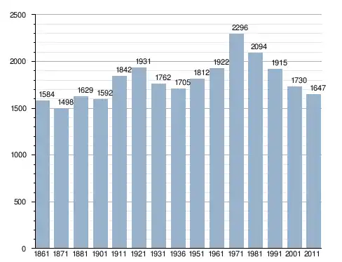 في سنة 1861 بلغ عدد السكان 1٬584 نسمة، وتطور العدد ليصل في سنة 2011 لـ 1٬647 نسمة.
